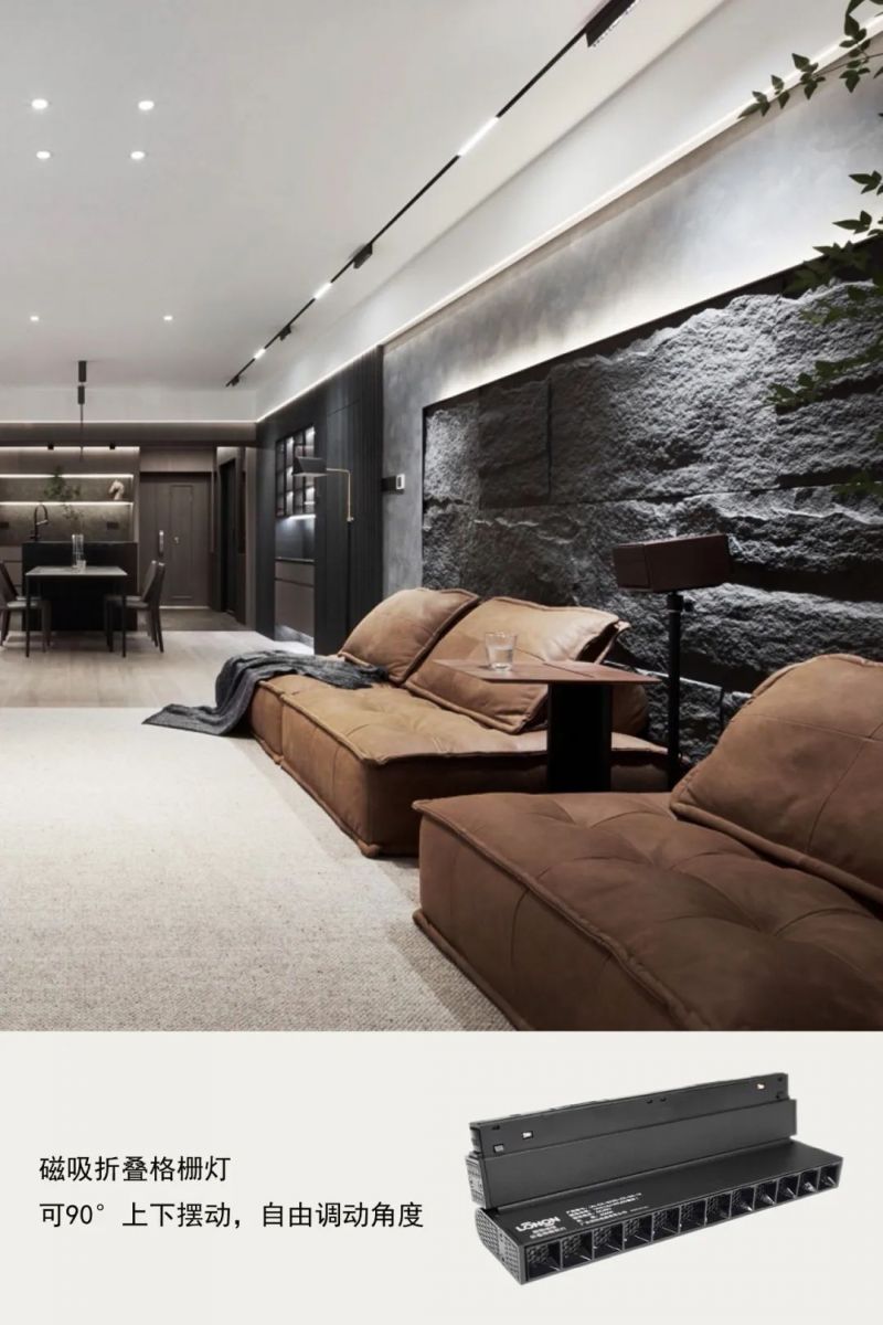 在磁吸格柵燈的結(jié)構(gòu)上,多了一個(gè)折疊功能,可以上下90°擺動(dòng),自由調(diào)節(jié)光照角度,提高了燈具靈活性。