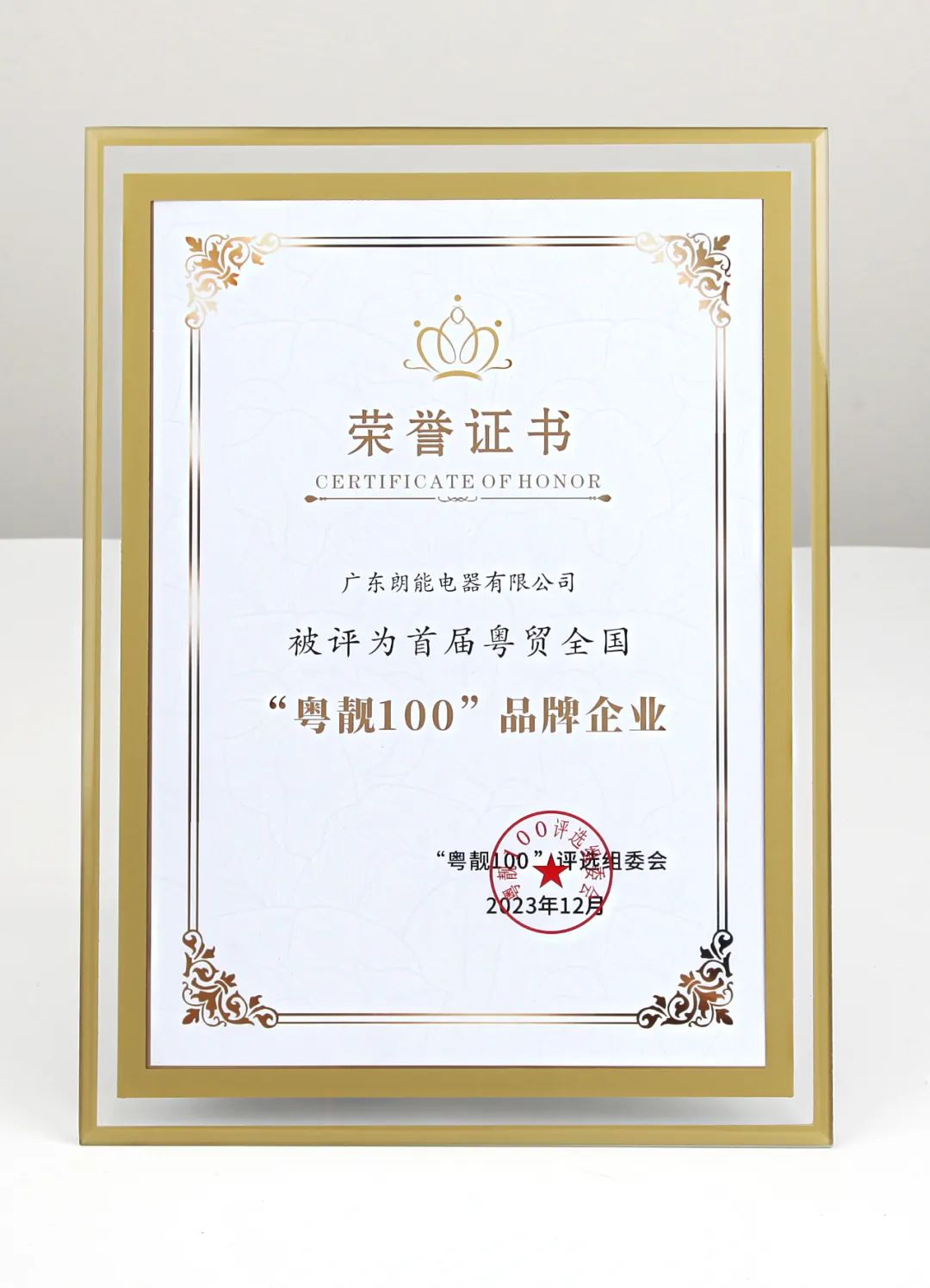 朗能電器在廣東省照明電器協(xié)會(huì)的推薦下,憑借穩(wěn)健的經(jīng)營(yíng)作風(fēng),優(yōu)良的企業(yè)聲譽(yù),高精的生產(chǎn)工藝,美好的品牌形象,成功被評(píng)為首屆粵貿(mào)全國(guó)“粵靚100”品牌企業(yè)。