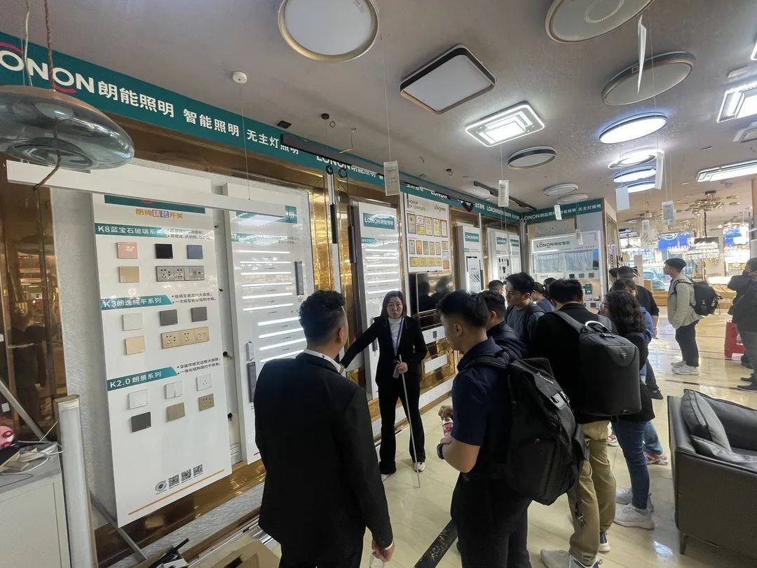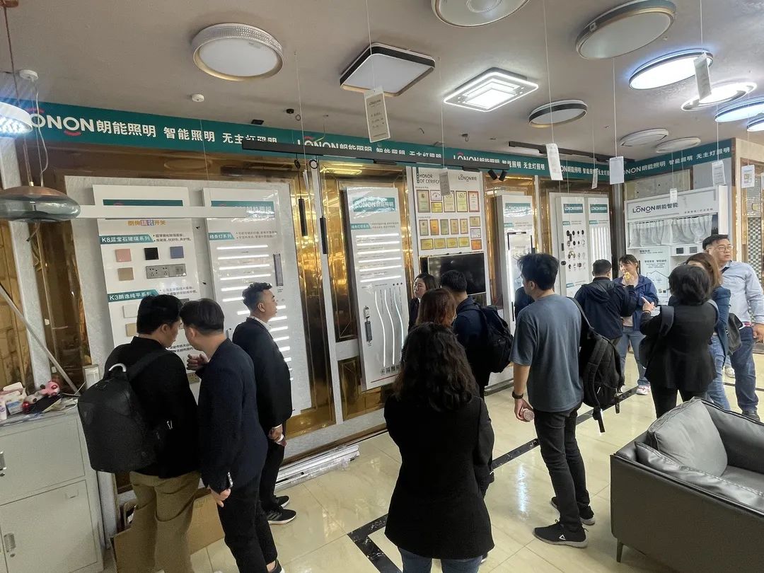 與會(huì)人員現(xiàn)場(chǎng)觀(guān)摩朗能照明(佛山)展廳