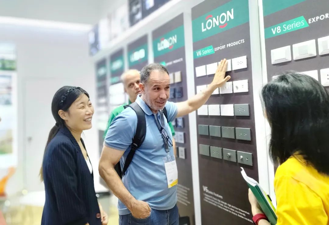展會(huì)上,朗能傾情展示了十大系列外貿(mào)款開(kāi)關(guān)(K2.0、K3、K5、K8、V6、V8、V9、B8、B9、Track Socket)。優(yōu)質(zhì)的形象,簡(jiǎn)美的設(shè)計(jì),出眾的工藝,卓越的品質(zhì),齊全的規(guī)格,豐富的應(yīng)用,在慢條斯理間就“俘虜”了很多外商。