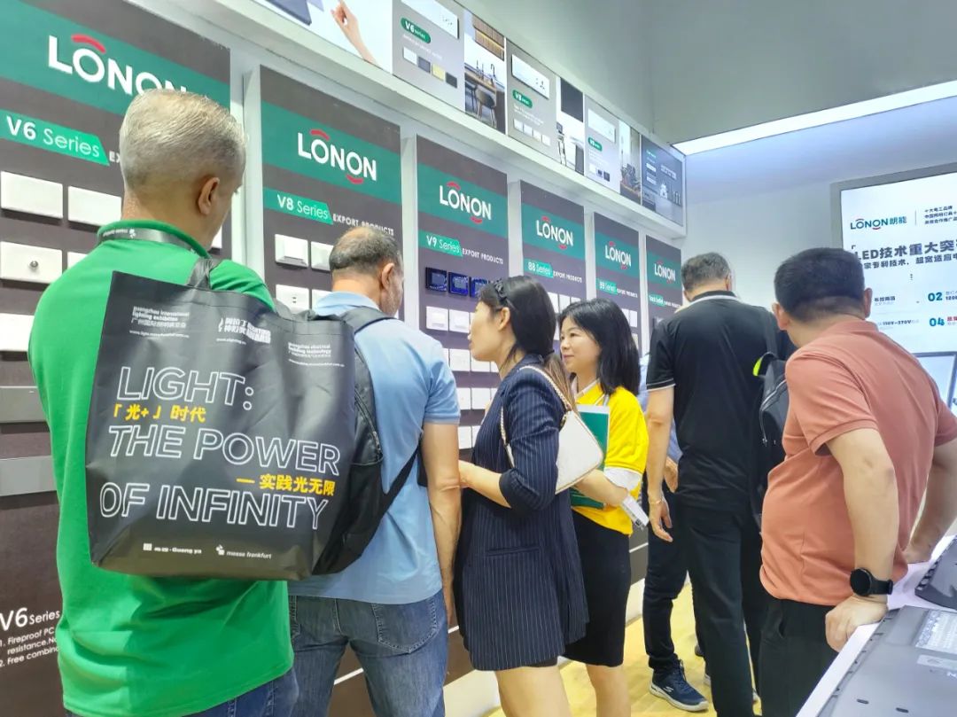 同聲相應(yīng),同氣相求。在展會(huì)上,朗能展示了五款國(guó)內(nèi)開(kāi)關(guān)(A3、A5、A8、A9、軌道插座),產(chǎn)品的諸多優(yōu)點(diǎn)和賣(mài)點(diǎn),同樣引發(fā)了廣大商家的極高熱情,前來(lái)鑒賞、了解和咨詢(xún)合作的商家絡(luò)繹不絕。這是朗能開(kāi)關(guān)回歸公司之后,首次在大型專(zhuān)業(yè)展會(huì)上亮相,出眾、出彩、出圈。